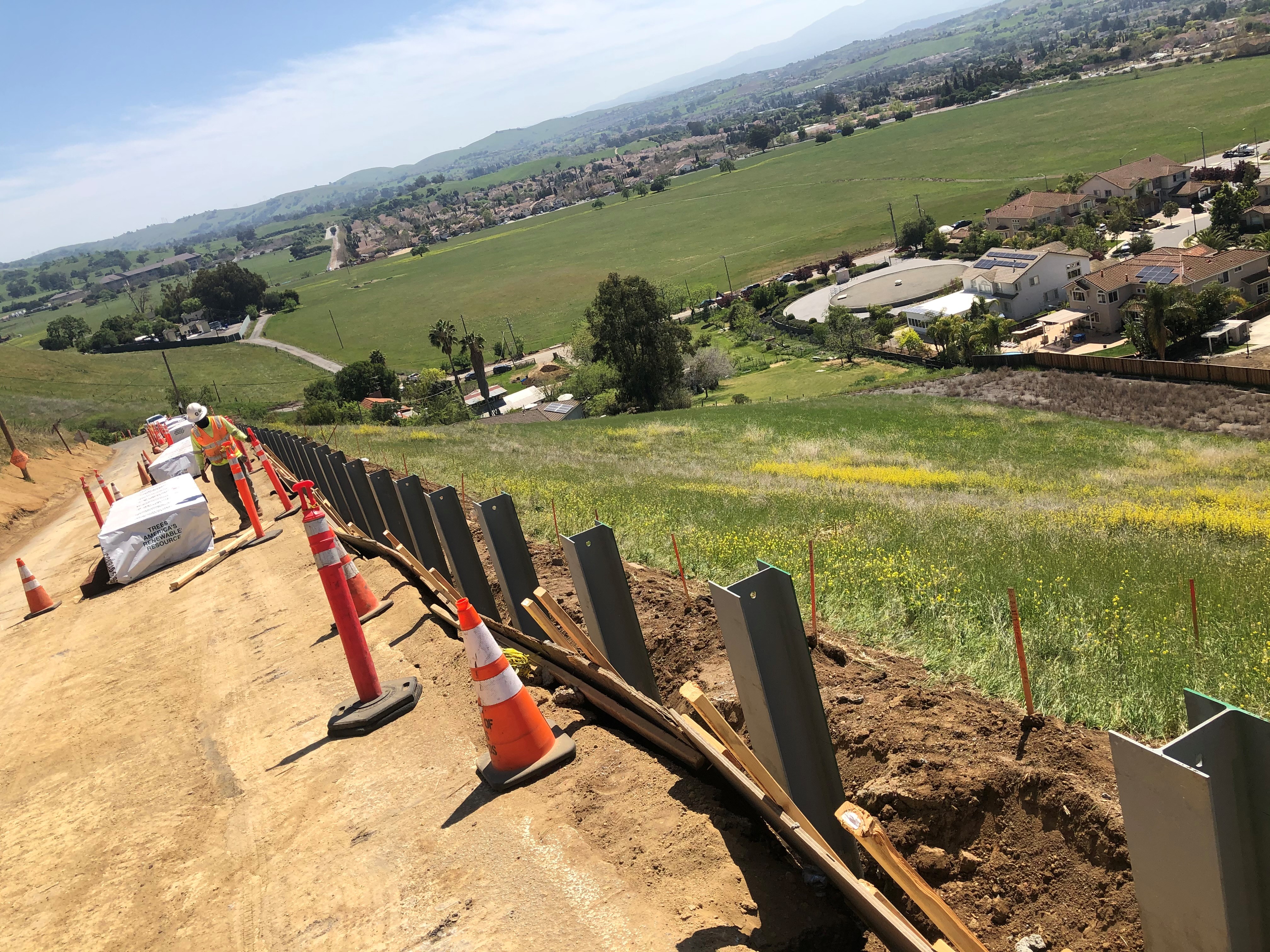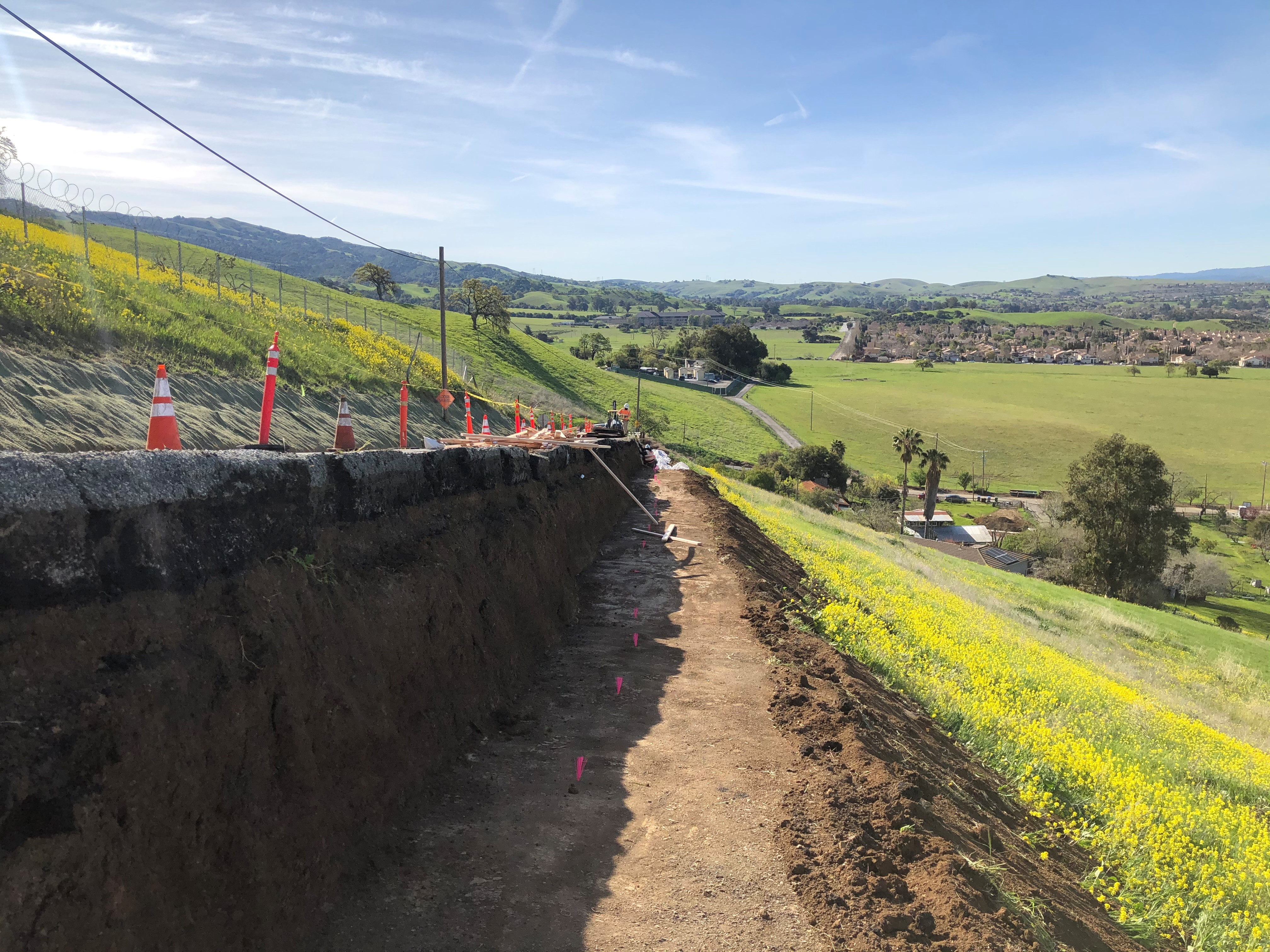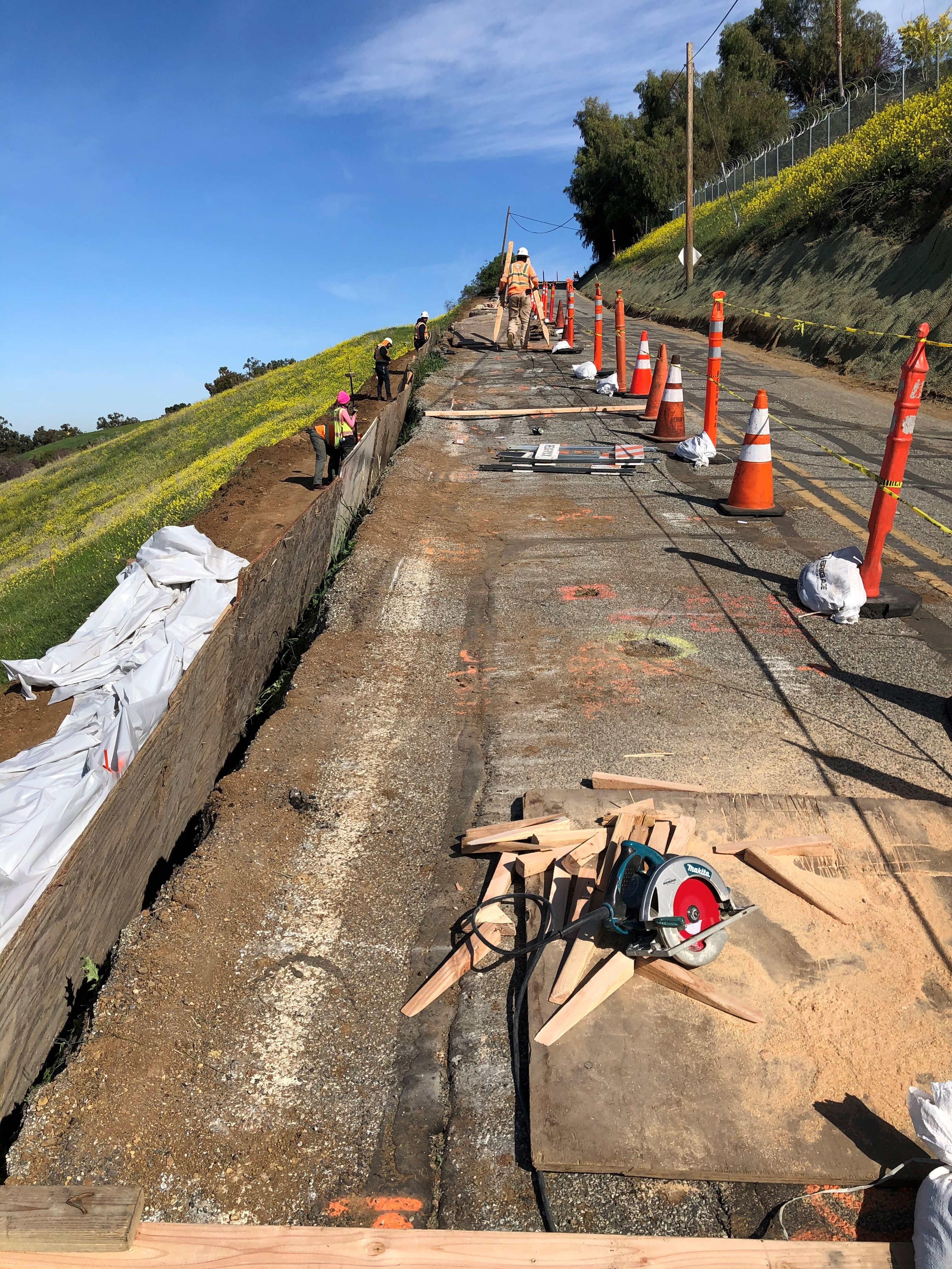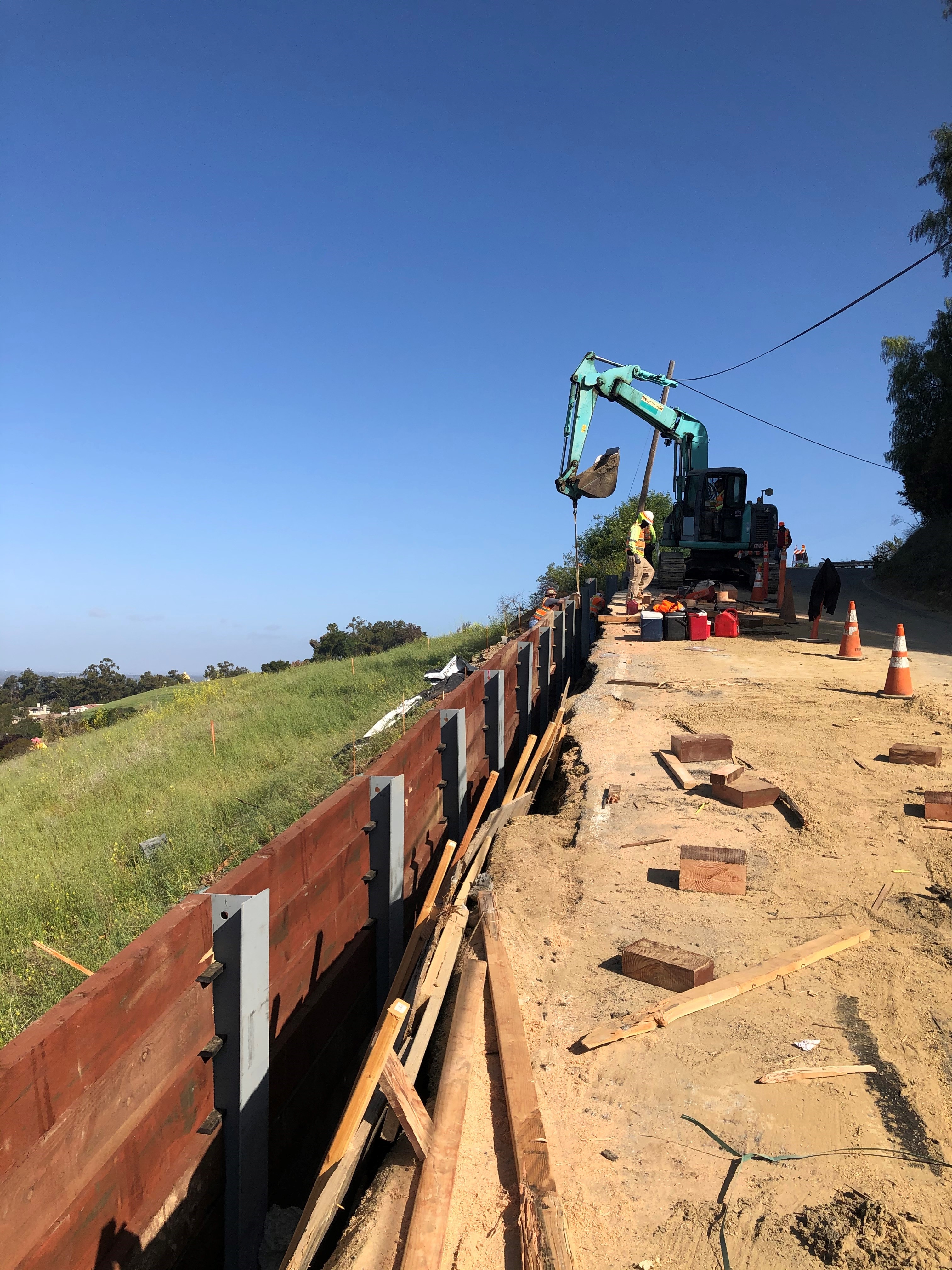 Due to heavy rains, the hillside and roadway along Aborn Road experienced significant movement and instability. The City of San Jose contracted Redgwick to perform hillside stabilization and road reconstruction. Redgwick excavated the affected area and drilled 30-foot-deep holes to install soldier piles with timber lagging for slope stabilization. Once the hillside was secured, Redgwick reconstructed the roadway, restoring full functionality and ensuring long-term slope stability.